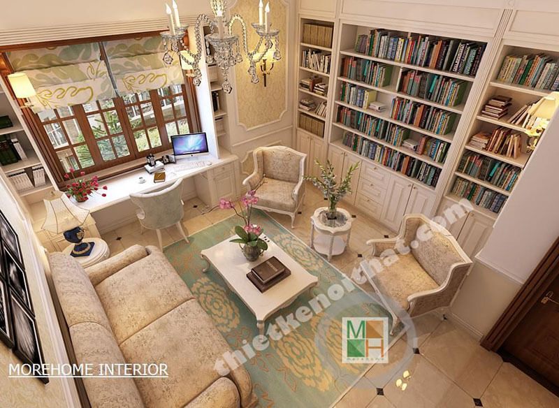 Biệt thự Hoa Phượng được thiết kế với một phòng đọc sách kết hợp với phòng làm việc sang trọng.